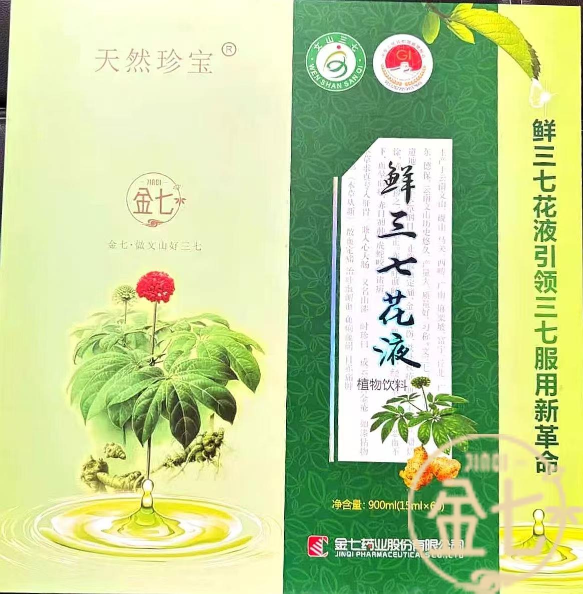 【原料】鮮三七提取物【輔料】純化水【性狀】澄明液體,允許有少量沉淀【標志性成分及含量】每100ml含...